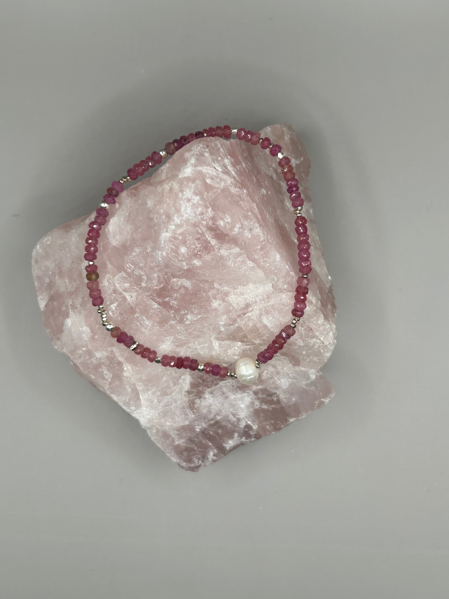 2mm faceted stones, Sterling Silver and a pretty Pearl.