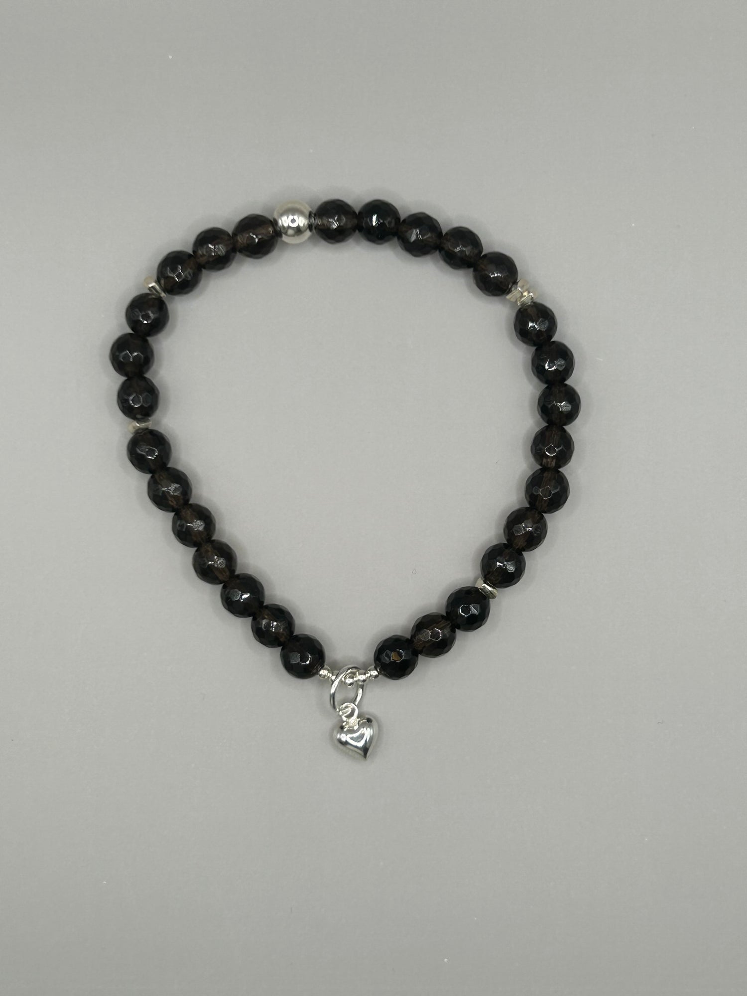 6mm faceted stones, Sterling Silver heart dangle charm.